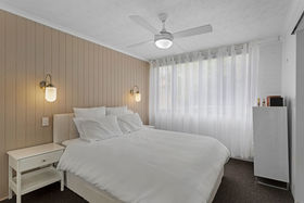 Both bedrooms are generously sized with built-in wardrobes and ceiling fans, with the master enjoying its own ensuite. The second bathroom conveniently includes a combined laundry and separate toilet. A single undercover carport and ample visitor parking add to the ease of living in this well-appointed residence.